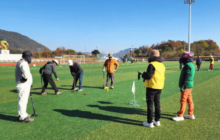 그라운드 골프는 골프와 게이트볼의 장점을 결합한 생활체육 종목으로, 넓은 경기장이 필요 없고 경제적 부담이 적으며 규칙이 간단해 어르신들이 부담 없이 즐길 수 있는 스포츠다.