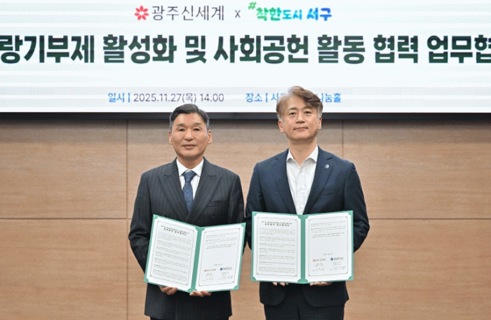 협약에 따라 ▲㈜광주신세계는 임직원을 대상으로 고향사랑기부제 안내 및 참여를 독려하고 ▲서구는 답례품 품목 확대와 함께 기부자 혜택 정보에 대한 접근성과 시인성을 높여 기부 참여를 유도할 계획이다. 아울러 양 기관은 지역사회 상생을 위한 사회공헌 프로그램도 공동으로 발굴‧추진한다.
