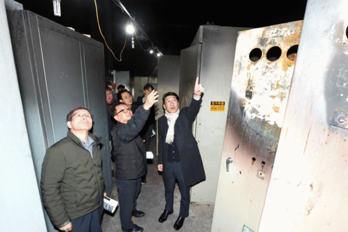 이날 우 시장은 아파트 관리소장으로부터 현재 상황을 전달받은 후 K아파트의 전력공급을 담당하는 수변전실 화재 현장을 둘러봤다.