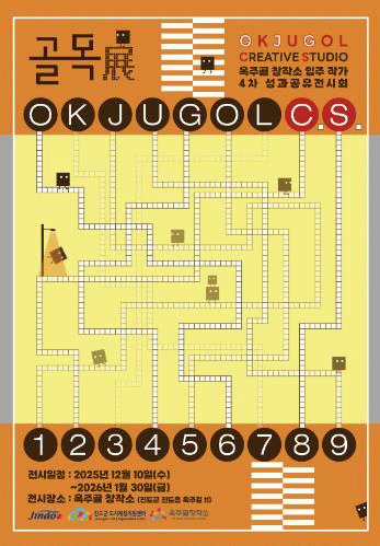 성과공유 전시는 1차(2025. 12. 10. ~ 12. 30)와 2차(2026. 01. 02. ~ 01. 30)로 나누어 진행되는데, 옥주골창작소 내 옥주골 갤러리, 계단 공간 등에 전시되며, 회화, 공예, 사진, 영상 등 분야를 넘나드는 작품들이 ‘골목’이라는 주제로 깊이 있게 재구성된다.