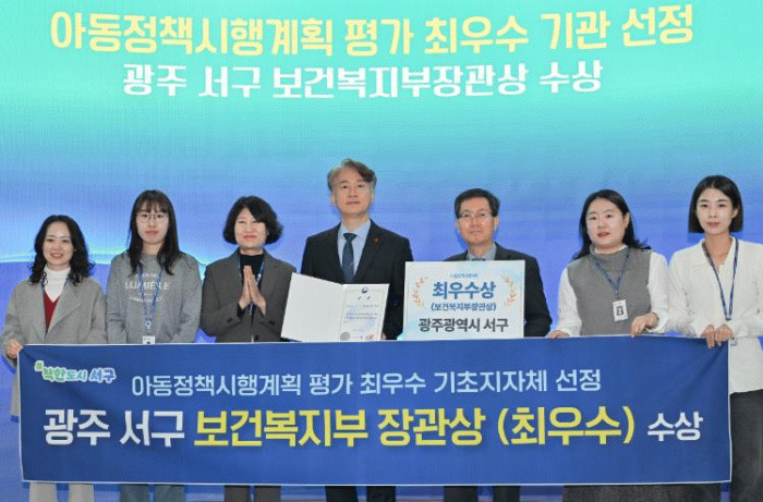 문광호 복지일자리국장은 “이번 최우수상 수상은 아동의 권리를 행정의 중심 가치로 두고 지속적으로 실천해 온 서구의 노력이 인정받은 결과”라며 “앞으로도 아이들이 안전하고 존중받는 도시, 가정이 안심하고 생활할 수 있는 ‘착한도시 서구’를 만들기 위해 노력하겠다”고 말했다.