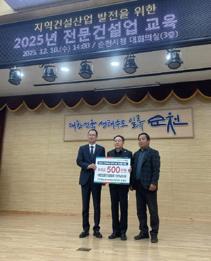 교육에 앞서 시는 건설산업과 지역사회 발전에 기여한 전문건설업체 대표 5인에게 시장 표창을 수여했으며, 대한전문건설협회 전라남도회(회장 강성진)와 대한전문건설협회 순천시협의회(회장 김근수)는 유능한 인재 육성을 지원하기 위해 순천시 인재육성장학회에 500만 원 장학금을 기탁했다.