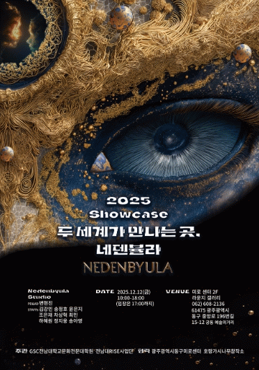 전남대학교 문화전문대학원과 전남대 RISE사업단은 작품의 확장 버전인 '두 세계가 만나는 곳, 네덴뷸라 쇼케이스'를 오는 12월 12일 미로센터 라운지 갤러리에서 개최한다고 밝혔다. 이번 쇼케이스는 주요 장면과 주제곡은 물론, 다양한 데이터 기반 인터랙티브 콘텐츠를 더해 단 하루 동안 관객과 만날 예정이다.