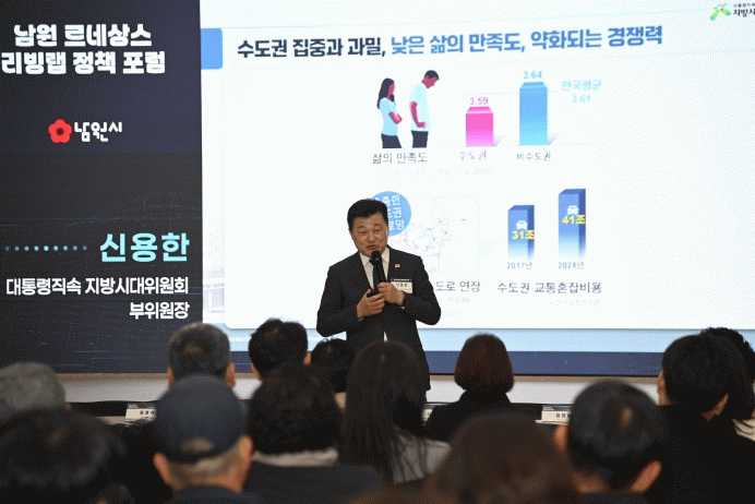 이어 홍미선 남원시 기획예산과장은 ▲‘남원시 생활인구 확대 방안’을 주제로 국립기관 유치, 미래 신성장산업 육성, 글로컬 관광거점 조성 등 남원의 미래 전략을 소개했다. 특히 주민등록 인구 중심의 기존 정책에서 벗어나 외국인·누리시민 등 체류인구까지 정책대상으로 확장하고, 지속적 관계 형성을 통해 생활인구를 확대해 나가겠다고 밝혔다.
