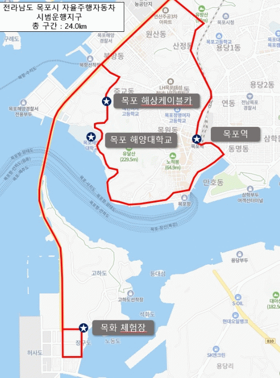지정 구간은 목포역을 시작으로 해양대학교, 해상케이블카, 목화체험장, 산정농공단지를 거쳐 다시 목포역으로 이어지는 총 24km 순환 노선이다. 유달동·북항동·원산동 등을 포함해 목포 도심과 관광지, 항만 배후 산업권을 폭넓게 연결한다.