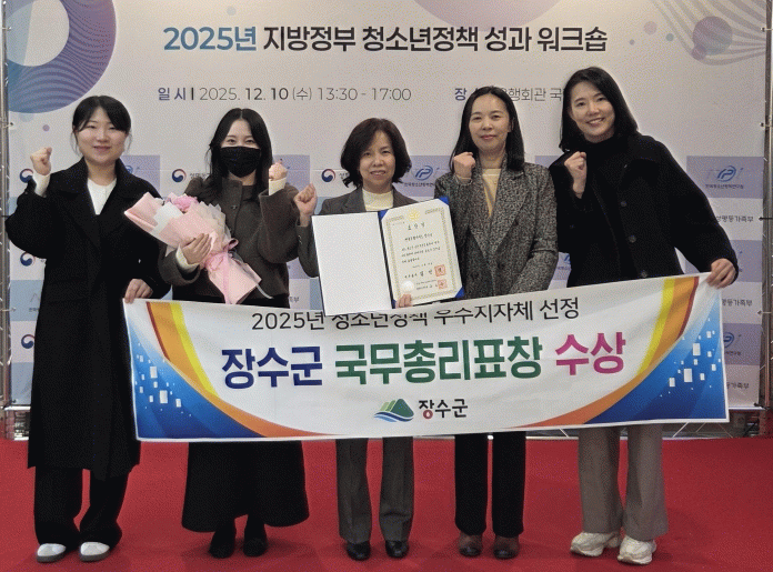 이정우 부군수는 “이번 국무총리 표창은 장수군 청소년 정책이 국가로부터 인정받은 성과이자 우리 지역 청소년들과 학부모, 현장에서 함께 애써주신 관계자 여러분이 함께 이뤄낸 결과다”며 “앞으로도 청소년들이 장수에서 꿈을 찾고 키우며 건강하게 성장할 수 있도록 다양한 정책을 지속적으로 추진하겠다”고 말했다.