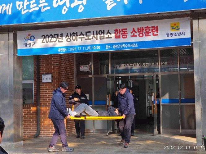 이번 훈련은 상하수도사업소 자위소방대와 영광소방서, 영광군 공공하수처리시설 관리대행사가 참여하여 화재 발생 상황을 가정하고 개인별 임무를 부여한 후 체계적으로 실시했다.