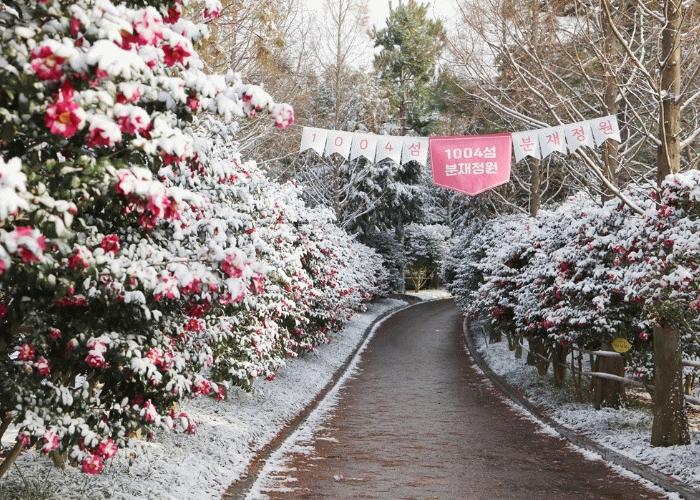 3km 애기동백 숲길에 2만 그루가 이미 활짝 피어 정원을 붉게 물들이고 있으며, 축제 기간에는 약 4천만 송이의 애기동백꽃이 절정을 이룰 전망이다. 관람객들은 한겨울에도 화사한 꽃길을 거닐며 특별한 자연경관을 만끽할 수 있다.