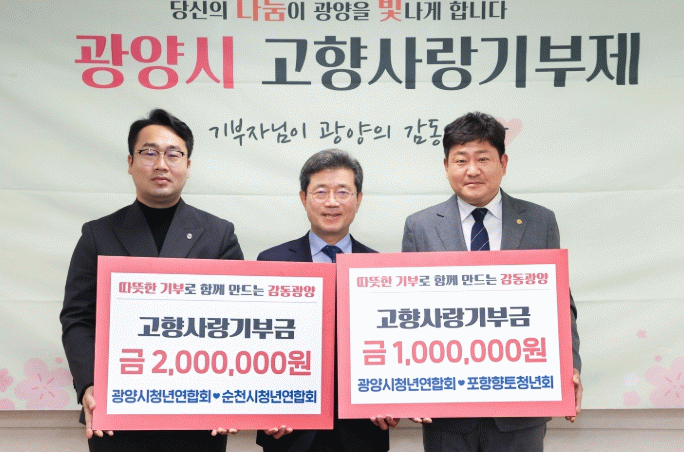 광양시청년연합회는 자매결연 청년단체들과 고향사랑 상호기부의 취지를 공유하며 상호기부를 추진했으며, 포항향토청년회와 100만 원, 순천시청년연합회와 200만 원을 상호 기부해 총 300만 원을 기탁했다.