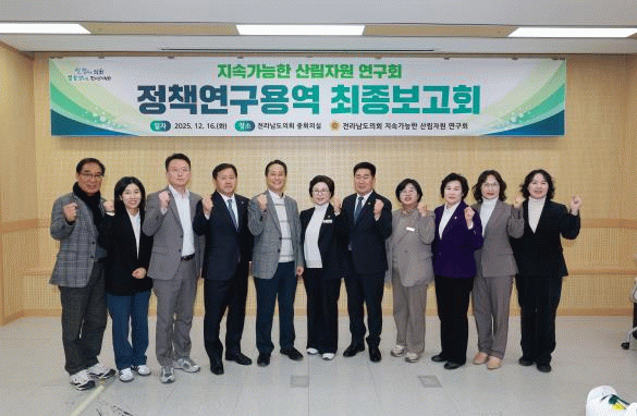 한편, 연구회는 박현숙 대표위원을 포함해 김성일(해남1), 차영수(강진), 오미화(영광2), 최선국(목포1), 최미숙(신안2), 김회식(장성2) 김재철(보성1) 위원 8명이 참여하여 전남의 지속가능한 산림자원 활용을 위한 정책 개발에 힘쓰고 있다.
