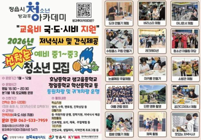 특히, 정읍시 청소년방과후아카데미는 올해 괄목할 만한 성과를 거두며 우수성을 입증했다.