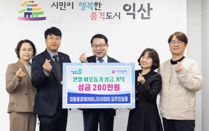 익산시 마동풍경채어바니티아파트 입주민들은 31일 시청을 방문해 이웃돕기 성금 200만 원을 기부했다.