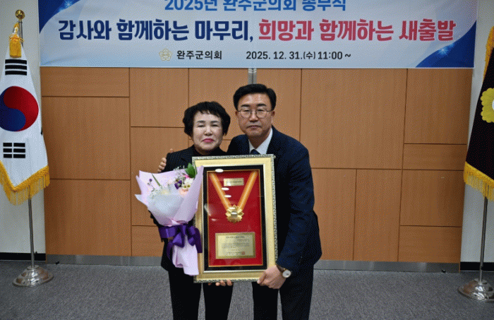이경애 의원은 수상 소감에서 “이번 수상은 더 잘하라는 군민 여러분의 격려이자 책임이라고 생각한다”며 “앞으로도 책상보다 현장을 먼저 찾고, 말보다 실천으로 답하는 의정활동을 이어가겠다”고 강조했다.
