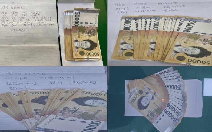 봉투에는 “저는 국동에 사는 주민입니다. 저도 넉넉한 살림은 아니지만 저보다 더 어려운 사람들이 있을 거라는 생각에 조그만한 도움이 됐으면 합니다. 오래전부터 하고 싶었는데 이제야 행동으로 옮기니 내 마음이 무척 편안합니다.”라는 내용의 손편지도 함께 담겨 있었다.
