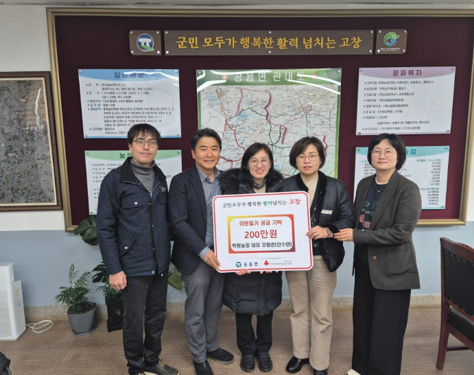 김애숙 공음면장은 “소중한 나눔으로 지역사회에 귀감이 되어 주시는 오형준 대표와 진수연님께 깊은 감사드린다”며 “소중한 성금이 도움이 꼭 필요한 이웃들에게 잘 전달될 수 있도록 최선을 다하겠다”고 밝혔다.