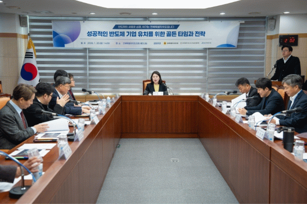 발제를 맡은 전북경제통상진흥원 이범순 통상탁터는 “기업유치를 위한 가장 중요한 과제는 기업이 우려하는 전력 수급 불안과 투자 리스크를 제도적으로 해소하는 것”이라며, “전북은 재생에너지 자원과 산업단지를 동시에 보유한 지역으로, 이를 연계한 반도체 맞춤형 전력공급 모델을 선제적으로 제시할 필요가 있다”고 밝혔다.