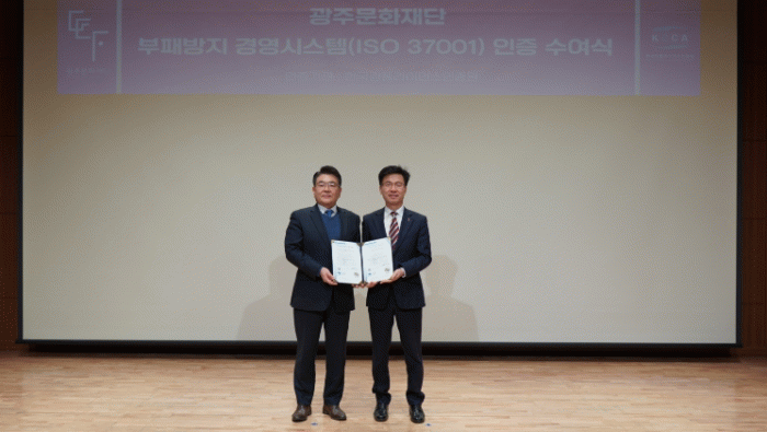 광주문화재단 배동환 사무처장은 “이번 ISO 37001 인증은 재단 전 직원이 함께 부패 위험을 사전에 차단하고 공정·투명한 업무 환경을 만들기 위해 노력한 결과”라며, “앞으로도 부패방지 경영시스템을 지속적으로 운영해 시민에게 신뢰받는 문화기관으로 자리매김하겠다”고 밝혔다.