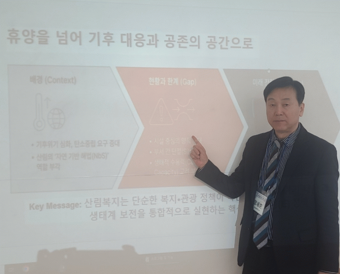 산림복지를 여가·관광·힐링 중심의 기존 관점에서 벗어나, 기후변화 완화와 적응, 자연 기반 해법, 탄소흡수원 관리, 생물다양성 보전 등 환경(E) 가치 실현의 장으로 재정의해야 한다고 제안했다.