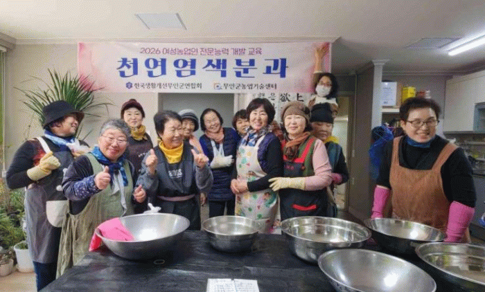 한편, 무안군생활개선회는 군 단위와 읍·면 단위를 포함해 10개 회, 420명의 회원으로 구성돼 있으며, 천연염색을 비롯해 치유농업과 우리 음식, 생활문화 등 4개 분과활동을 운영하고 있다.