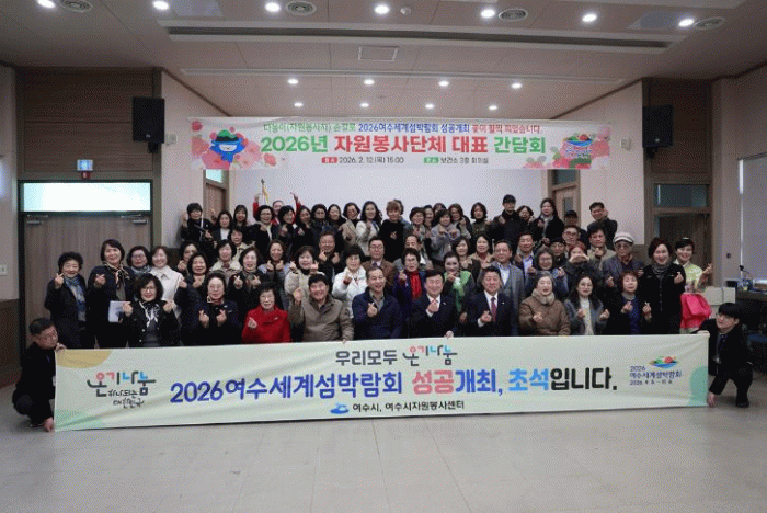 이번 간담회는 “다봉이(자원봉사자) 손길로 2026여수세계섬박람회 성공개최 꽃이 활짝 피었습니다”라는 슬로건 아래, 자원봉사 운영 방향과 여수시 자원봉사센터 주요 사업을 설명하고 봉사단체 대표들의 의견과 건의 사항을 청취하기 위해 마련됐다.