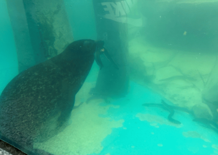 물범 ‘초롱’이는 두 딸 ‘희망’, ‘몰랑’이와 함께 생장어 사냥을 즐기며 스트레스를 날렸다. 막내딸 몰랑이는 어느덧 희망이 못지않은 수영실력을 뽐내며 장어를 쫓았다.