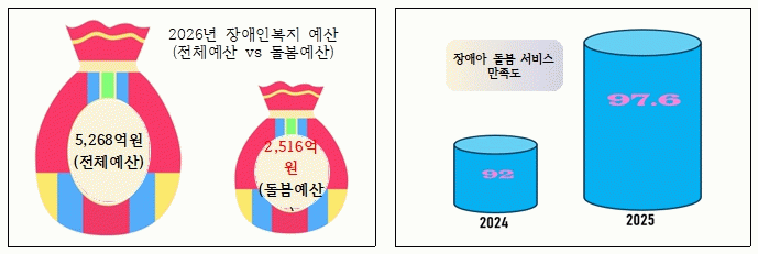 이 같은 정책 확대의 성과도 나타나고 있다. 사단법인 장애인인권연대에 따르면 장애아 돌봄서비스 만족도는 2024년 92점에서 2025년 97.6점으로 크게 상승한 것으로 조사됐다.