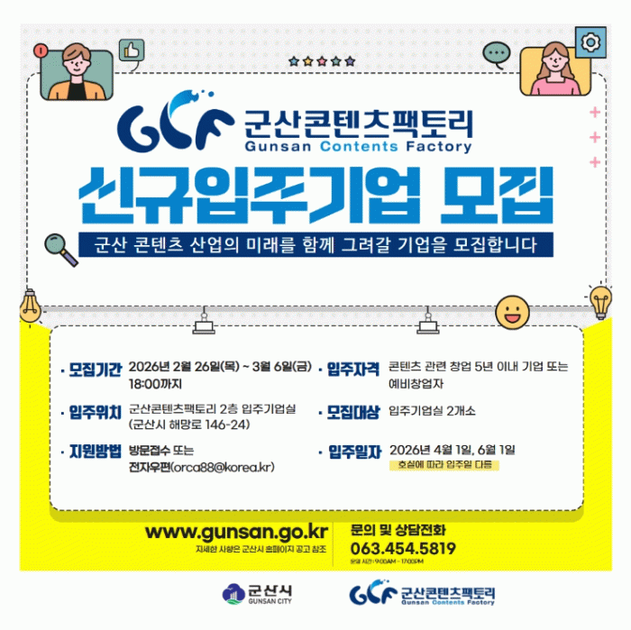 기타 자세한 사항은 군산콘텐츠팩토리 운영지원실로 문의하면 된다.