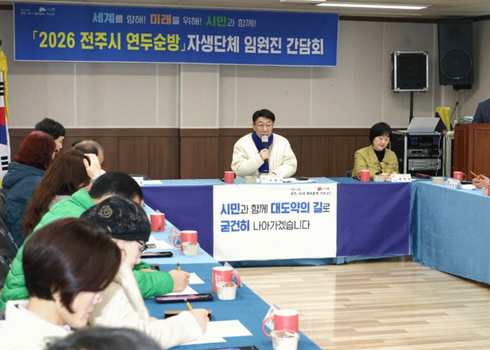 우범기 시장은 25일 삼천2동주민센터에서 ‘사랑이 꽃피는 나눔 공동체 삼천2동’을 주제로 주민자치위원회와 통장협의회 등 자생 단체 임원진들과 격의 없는 소통간담회를 시작으로 ‘2026 연두순방’을 실시했다.