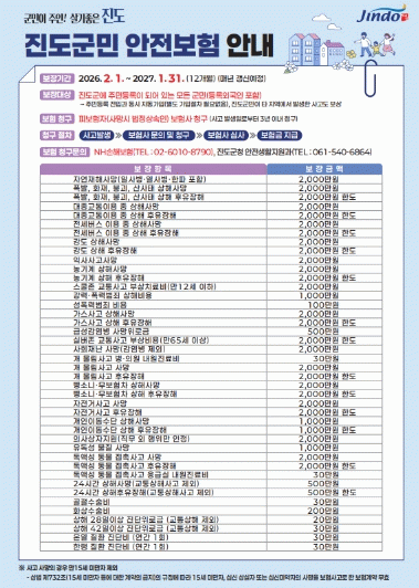 김희수 진도군수는 “앞으로도 군민안전보험과 같이 군민이 체감할 수 있는 안전 정책을 지속적으로 추진하겠다”라고 말했다.