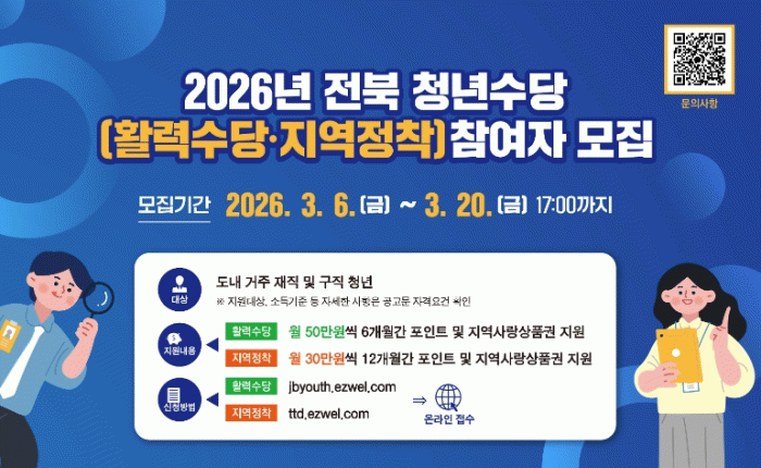 신청기간은 6일부터 오는 20일까지이며, ‘전북형 청년활력수당 홈페이지에 접속해 신청서와 관련 서류를 업로드하면 된다.