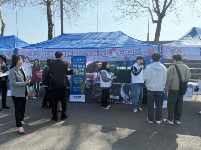 홍보부스는 전북대학교 대운동장 일원에 설치돼 오전 10시부터 오후 5시까지 운영한다. 현장에는 전주 하계올림픽’ 핵심 메시지를 담은 홍보 영상이 설치돼 유치 비전을 전달하고, 리플릿과 전단 등 홍보물을 배부하고 있다.