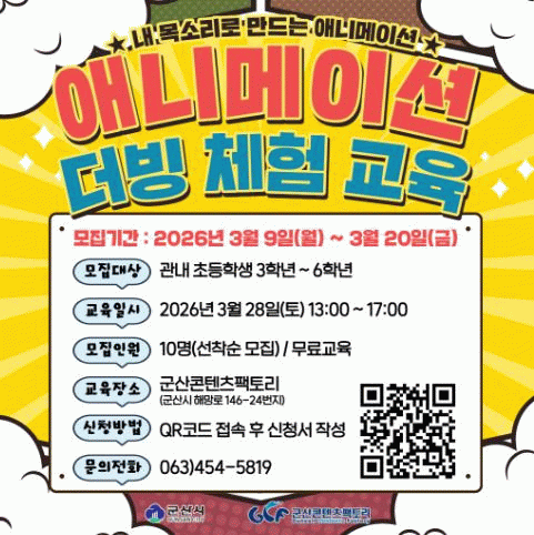 김영효 문화예술과장은 “학생들이 직접 목소리 연기를 하며 콘텐츠 제작 과정을 경험함으로써 창의력과 표현력을 기르는 소중한 시간이 될 것”이라며, “앞으로도 지역 청소년들이 다양한 콘텐츠 분야를 체험할 수 있도록 실습 중심 프로그램을 지속적으로 확대해 나가겠다”고 전했다.