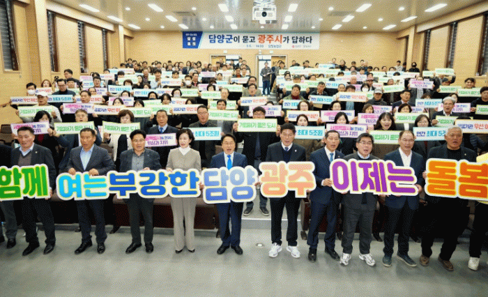 이어진 질의응답 시간에는 강기정 광주시장과 정철원 담양군수가 직접 군민들의 질문에 답변하며 통합 이후 지역 변화와 발전 방향에 대해 의견을 나눴다.