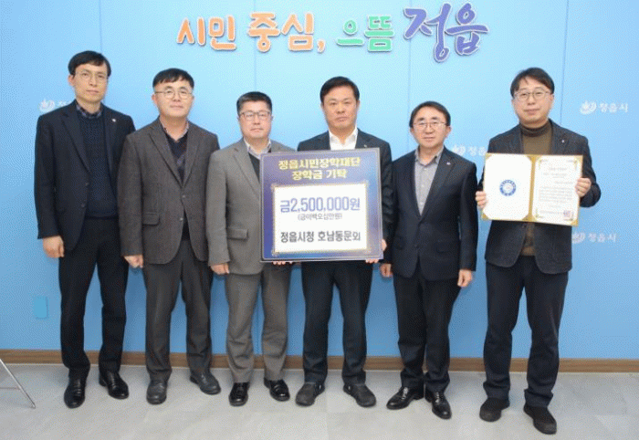 정읍시민장학재단은 지난 6일, 청호회가 지역 학생들을 위해 써달라며 장학금 250만원을 전달했다고 밝혔다.