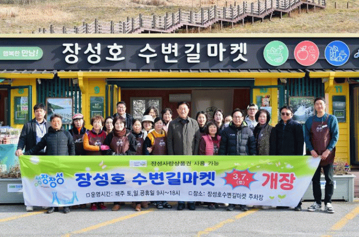 장성호 주차장(장성읍 용강리 163번지)에 위치한 ‘수변길마켓’은 총 17개 지역 농가 및 업체가 참여하는 농특산물 직거래 판매장이다.