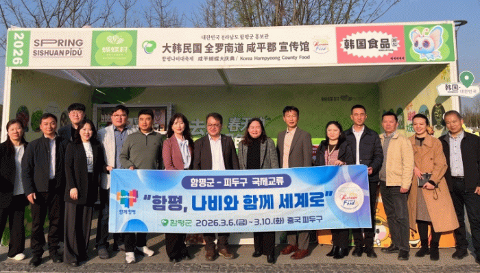 함평군은 “지난 7~9일 중국 청두시 피두구에서 열린 ‘제4회 나비촌 유채꽃축제’를 방문해 ▲축제 교류 ▲농특산품 브랜드 K-HC(Korea-Hampyeong County)푸드 판로 개척 ▲농업 교류 등 다양한 분야에서 양 지역 간 실질적인 협력을 구체화하고 글로벌 협력 기반을 다졌다”고 10일 밝혔다.