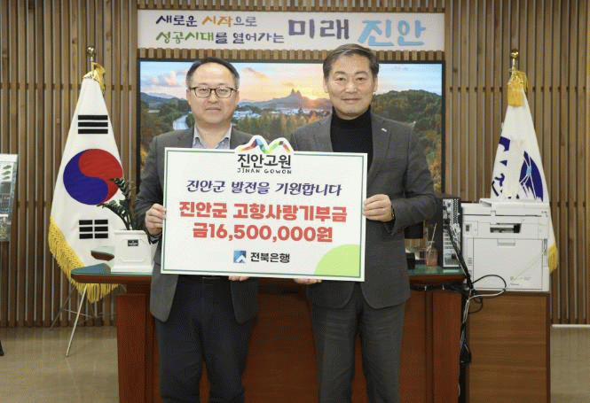 전북은행은 2023년 1,200만 원, 2024년 1,520만 원, 2025년 1,370만 원에 이어 올해도 기부에 동참하며 4년 연속 진안군 고향사랑기부제에 참여하고 있다. 특히 각 지점에서 근무하는 직원들이 자발적으로 참여해 기부금을 마련했다는 점에서 의미를 더하고 있다.