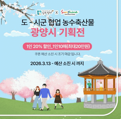 이번 기획전에서는 ▲매실 가공제품 ▲고로쇠 ▲쌀 ▲증류주 등 광양시 우수 농·특산물을 20% 할인 쿠폰을 적용해 구매할 수 있도록 했다.