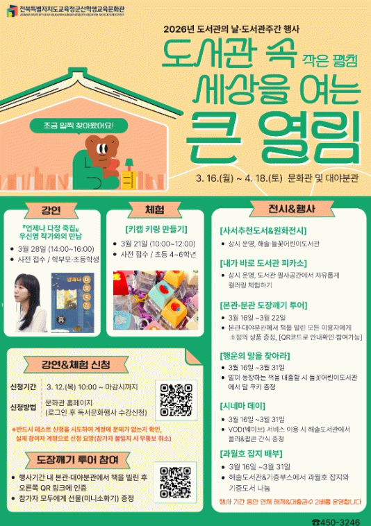 또 2026년 붉은 말의 해를 기념해 말이 등장하는 도서를 대출하는 이용자에게 선물을 증정하는 △‘행운의 말을 찾아라’ 이벤트 △‘나만의 키캡 만들기’ 원데이 체험 △도서관 필사 공간을 활용한 ‘내가 바로 도서관 피카소’등 학생·학부모·지역주민 누구나 참여할 수 있는 활동이 이어진다.