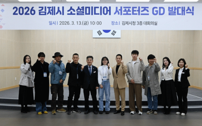 시는 13일 오전 10시 시청 3층 대회의실에서 ‘2026 김제시 소셜미디어 서포터즈 GD(Gimje Dreamers)’ 발대식을 개최했다고 밝혔다.