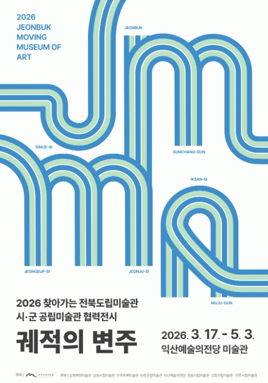 익산예술의전당 미술관은 오는 17일부터 5월 3일까지 '익산·목표 지역교류전-익산미술상생전'과 '찾아가는 미술관-궤적의 변주'를 개최한다.