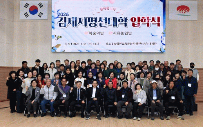 정성주 김제시장은 격려사를 통해 “이번 입학식은 단순한 교육 시작을 넘어 지역 농업의 지속가능한 미래를 준비하는 중요한 발걸음이라며 현장 중심의 실효성 있는 교육을 통해 전문 농업인과 치유농업 전문가를 양성하겠다”고 밝혔다.