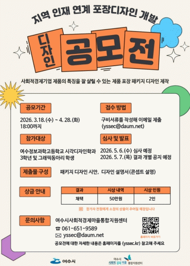 이번 사업을 통해 기업은 제품의 브랜드 이미지와 상품 경쟁력을 높이고, 학생들은 지역 기업과 협력하는 실무 경험을 쌓을 수 있어 지역 인재와 사회적경제기업이 함께 성장하는 상생 협력 사례로 이어질 것으로 기대된다.