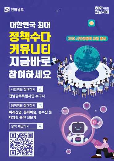 20조 시민공동체 포럼 시민·정책위원 참여와 정책 제안은 전남도 누리집에서 참여·접수할 수 있다.