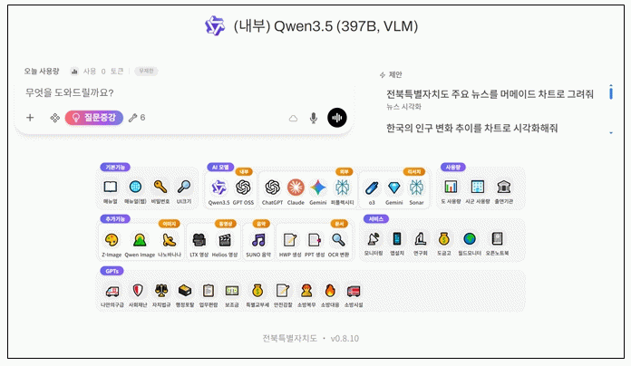도는 그간 모바일 앱 정식 출시, 시스템 처리 속도 개선, PDF·HWP 문서 추출 기능 고도화 등 편의성과 업무 활용도를 높이기 위한 기능 개선을 지속적으로 추진해 왔다. 신규 앱 ‘전북AI’를 전 직원에게 보급해 시간과 장소에 구애받지 않고 AI를 손쉽게 활용할 수 있는 업무 환경을 구현하고 있다.