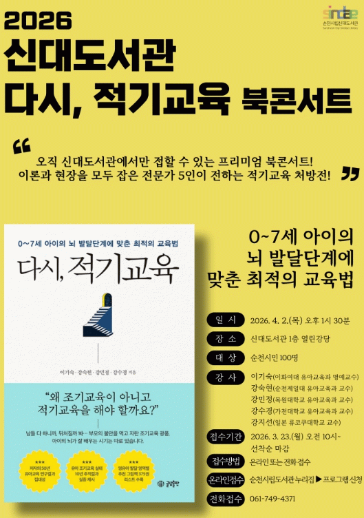 자세한 사항은 순천시립도서관 누리집을 확인하거나 신대도서관으로 문의하면 된다.
