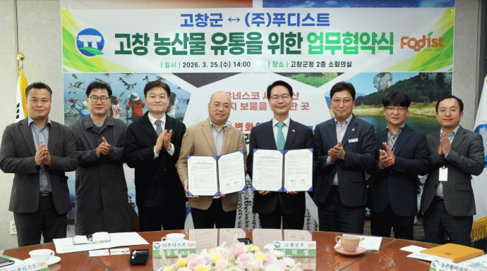 이날 협약식에는 고창군수와 하동열 ㈜푸디스트 상품BU장 등이 참석했다. 사조그룹 계열사인 ㈜푸디스트는 2025년 서해안고속도로 고인돌휴게소의 운영위탁자로 선정돼 최근 리뉴얼 과정을 마무리하면서 방문객들의 큰 호응을 얻고 있다.