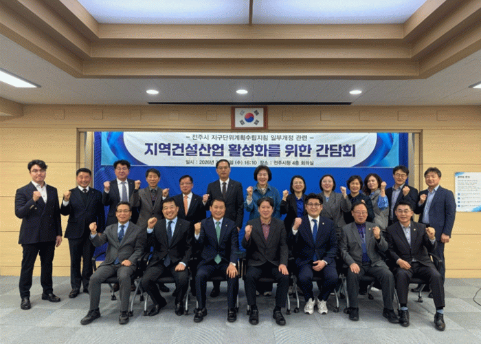 이날 간담회에는 김성수 건설안전국장을 비롯한 전주시 관계자와 김세혁 위원장을 비롯한 전주시의회 도시건설위원회 위원, 지역 종합건설업·전문건설업·전기·소방·설계 등 건설 관련 협회장단이 참석해 개정 지침의 주요 내용을 공유하고, 지역건설산업 활성화 방안을 함께 논의했다.