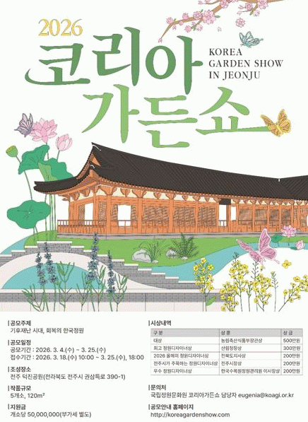 또한 국립정원문화원과 전주시가 공동 주관하는 코리아가든쇼의 경우 ‘기후변화 위기·한국 전통정원’을 주제로 이달 중 작품 공모를 거쳐 오는 4월 중 조성될 예정이다.