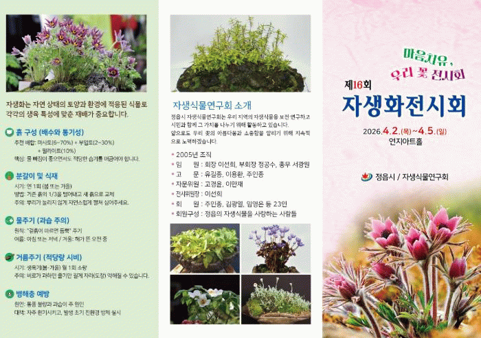 시 관계자는 “이번 전시회를 통해 시민들이 우리의 자생화를 직접 보고 체험하며 일상의 피로를 씻어내는 뜻깊은 시간을 보내길 바란다”며 “아름다운 우리 꽃이 가득한 이번 전시회에 많은 시민의 관심과 방문을 부탁드린다”고 말했다.